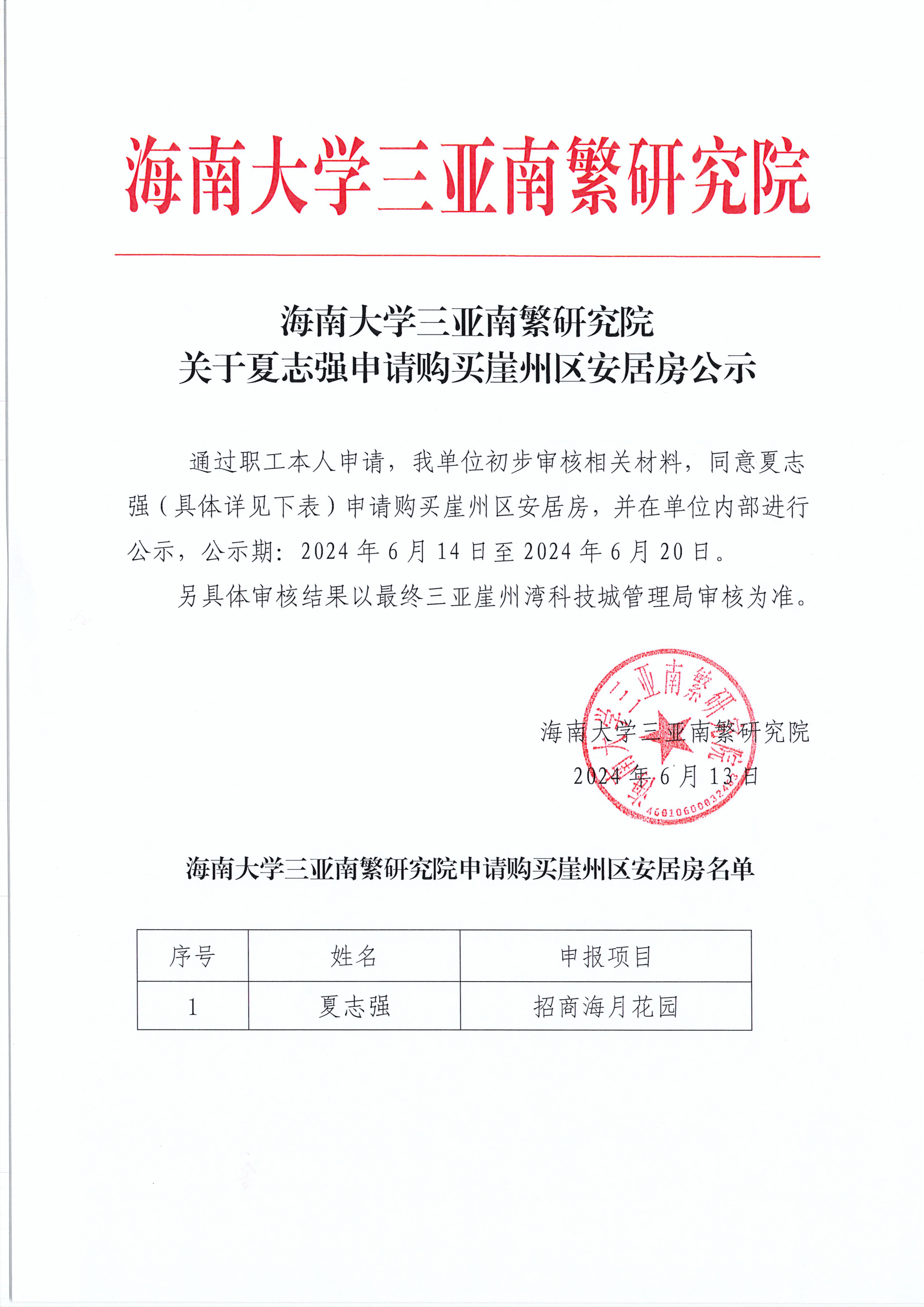 日韩无码-日本无码AV 三亚南繁研究院关于夏志强申请购买崖州区安居房公示